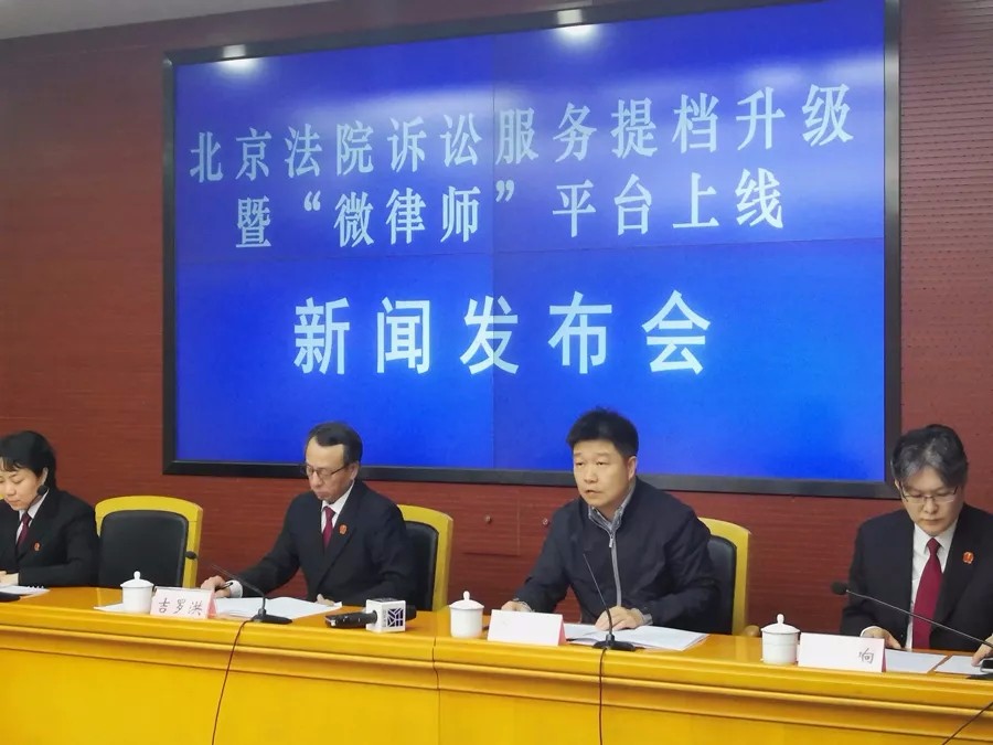 1月7日上午,北京市高级人民法院和北京市司法局联合召开新闻发布会,正式上线“微律师”服务平台。该平台依托“北京法院诉讼服务”微信公众号,推行“互联网+电子诉讼”新模式,集合了网上立案、案件查询、文书送达、材料提交、联系法官、档案借阅、营商环境、找法问案等核心功能,为广大律师参与诉讼和办理案件提供方便、快捷、实用的网络诉讼服务新途径。