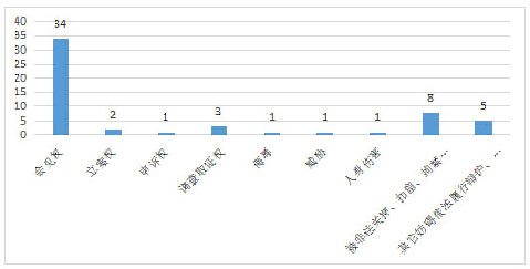 涉嫌侵权的单位(个人)包括:人民法院的5件,占9.80%;公安机关的35件,占68.63%;对方当事人和委托人的8件,占15.69%;检察院的1件,占1.96%;工商局的1件,占1.96%;政府部门的1件,占1.96%(图3)。