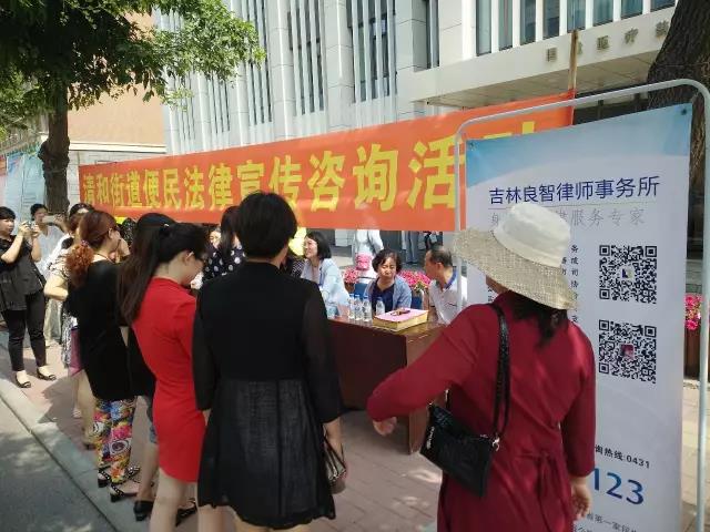 此次活动得到了长春市普法志愿者协会的大力支持,吉林良智律师事务所律师、清和街道办事处工作人员及长春市普法志愿者协会会员走上街头,为过往行人进行法治宣传,提供无偿法律咨询。